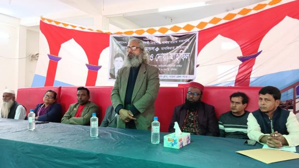 ভ্রাম্যমাণ প্রতিনিধি।। গত ১৫ অক্টোবর,২০ রাতে নাটোরের লালপুর উপজেলার জোকাদহে মরহুম ইয়াদ আলী সরদারের বাৎসরিক ওরশ উপলক্ষে ভক্তিমূলক বাউল গানের আসর অনুষ্ঠিত হয়। এ অনুষ্ঠানে প্রধান অতিথি হিসেবে উপস্থিত থেকে বক্তৃতা ও সঙ্গীত পরিবেশন করেন ঈশ্বরদী প্রেসক্লাবের সাবেক সভাপতি ডিডিপি চেয়ারম্যান সাপ্তাহিক জংসন সম্পাদক সিনিয়র সাংবাদিক কবি কলামিস্ট গীতিকার সুরকার সংগঠক সমাজসেবী ও শিল্পী জনাব এস এম রাজা। মরহুম ইয়াদ আলী সরদারের একমাত্র পুত্র সন্তান সিরাজুল ইসলাম সিরাজ সরদারের সভাপতিত্বে অনুষ্ঠিত এ আসরে বক্তব্য ও সঙ্গীত পরিবেশন করেন ডিডিপি আওতাপাড়া বাউল শিল্পী গোষ্ঠীর সঙ্গীত প্রশিক্ষক আমজাদ বাউল, ওবায়দুল ইসলাম, সাইদুল ইসলাম, আবুল কালাম আজাদ, তরিকুল ইসলাম, ইলিয়াস হোসেন, কালাম বাউল, রেমিন মাহমুদ, ডিডিপি খয়ের বাড়িয়া বাউল শিল্পী গোষ্ঠির সভাপতি সাদেক বাউল, শুকুর আলী বাউল, তমিজউদ্দিন বাউল, ডিডিপি উমিরপুর লালন স্মরণ সংঘের প্রতিষ্ঠাতা সভাপতি এম এ মান্নান ছাড়াও ডিডিপির শিল্পী নজরুল ইসলাম, আবু তালেব, মনিরুল ইসলাম, সোমা পারভিন, আব্দুর রশিদ, মিজানুর রহমান, কামাল শেখ প্রমুখ। রাত ৯টা থেকে শুরু হওয়া এই অনুষ্ঠানটি ভোর ৪ টায় সমাপ্ত হয়।প্রচুর সংখ্যক দর্শক শ্রোতা মনোমুগ্ধকর এই অনুষ্ঠানটি উপভোগ করে।
